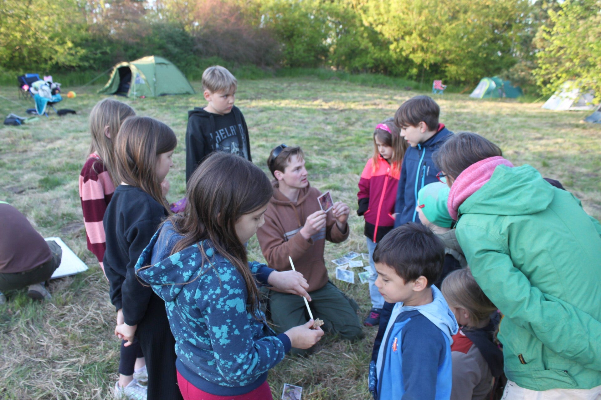 Vom 25.-27. April 2025 verbrachten wir mit vielen Kindern samt ihren Eltern ein schönes Wochenende in Mieste, einem kleinen Örtchen 30 km östlich von Wolfsburg, am Rand des Biosphärenreservats „Drömling“. Wie im Jahr zuvor trafen wir uns am Freitag im ehemaligen Freibad des Örtchens, bauten unsere Zelte auf und hatten Zeit zum Kennenlernen. Der Nachmittag bestand aus freiem Spielen in der Natur aber auch einem Lern- und Ratespiel zur Bestimmung unserer heimischen Amphibien. Nach dem Abendbrot machten wir es uns noch am Lagerfeuer bei Chips und Knüppelkuchen gemütlich, ehe sich alle ins Zelt verkrochen.