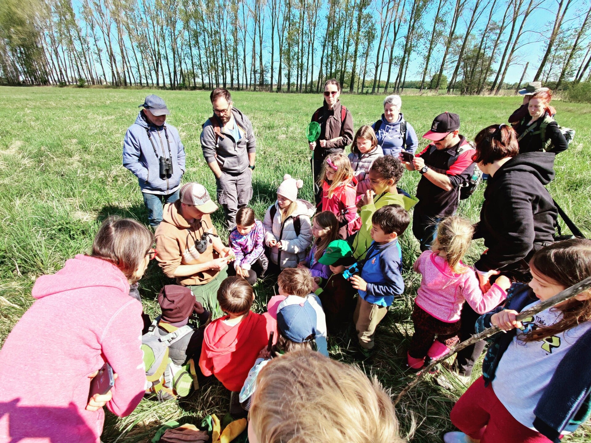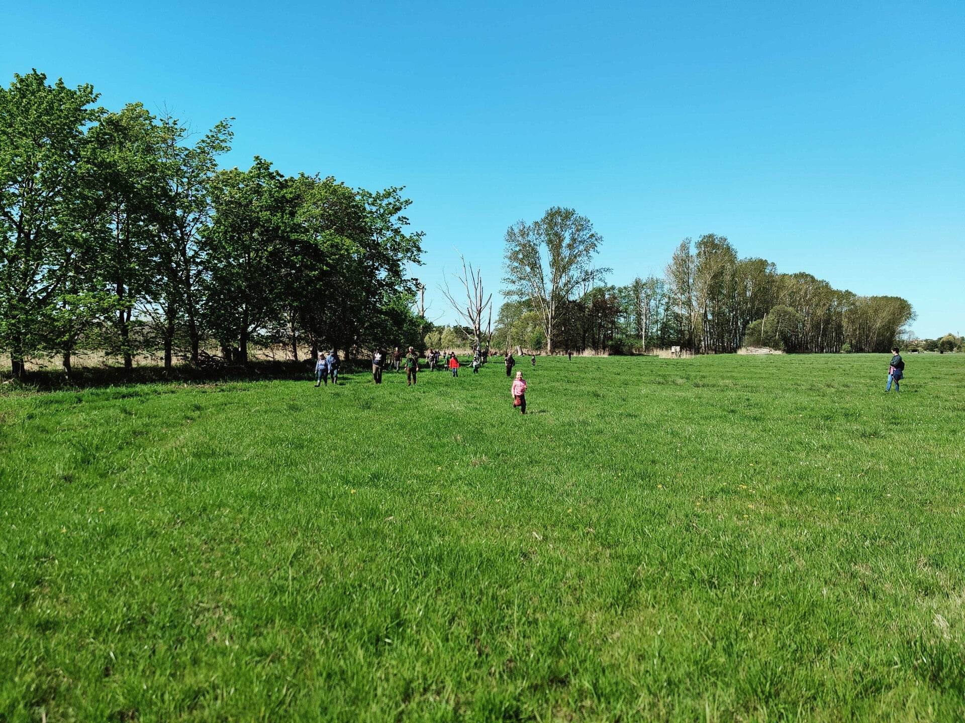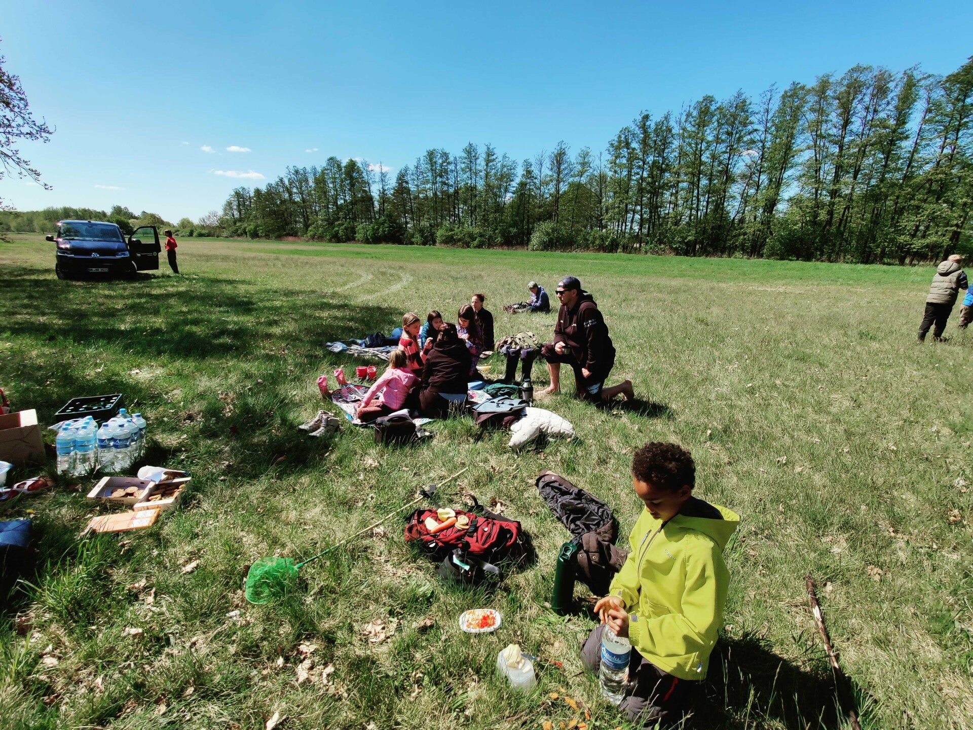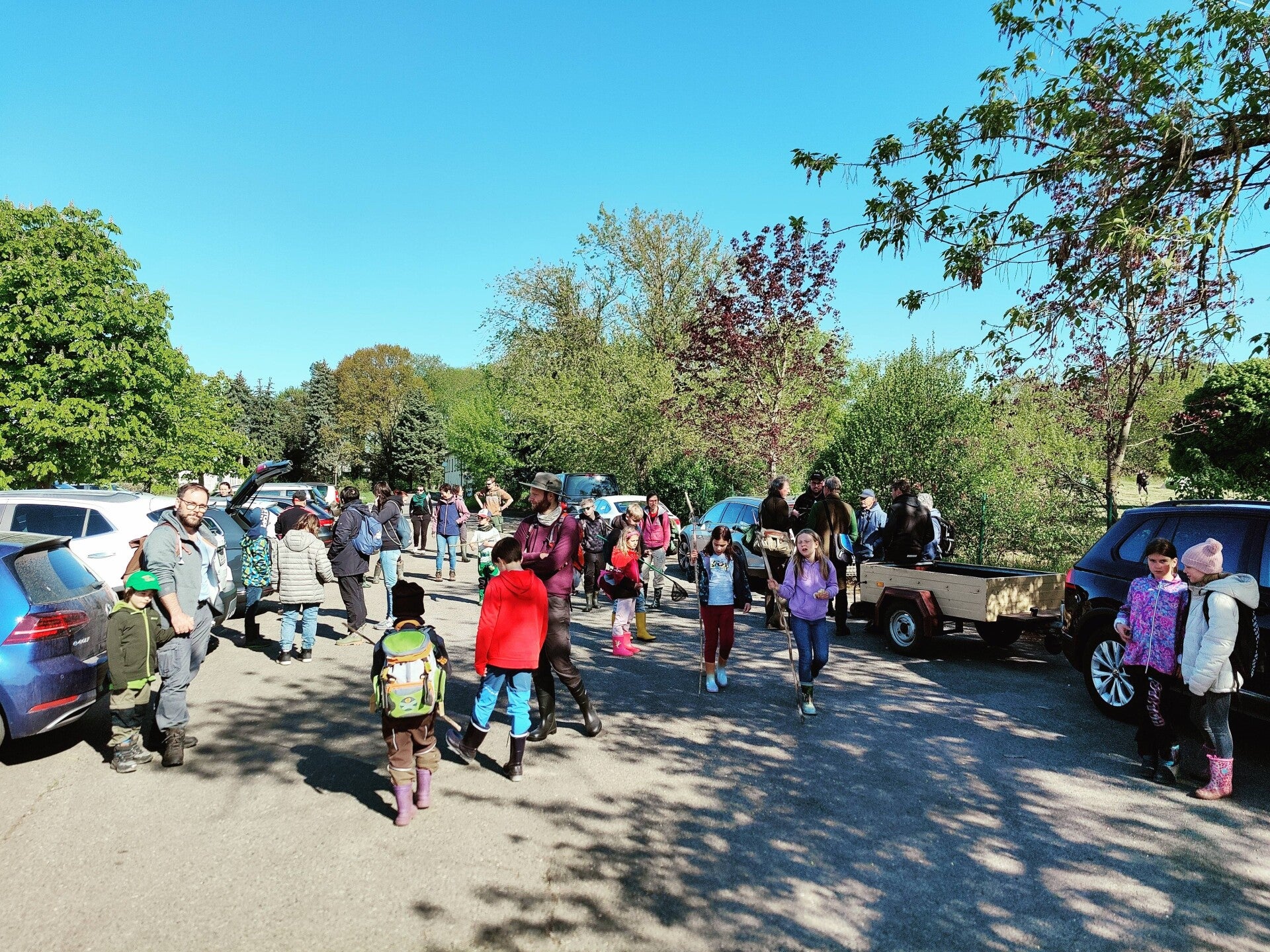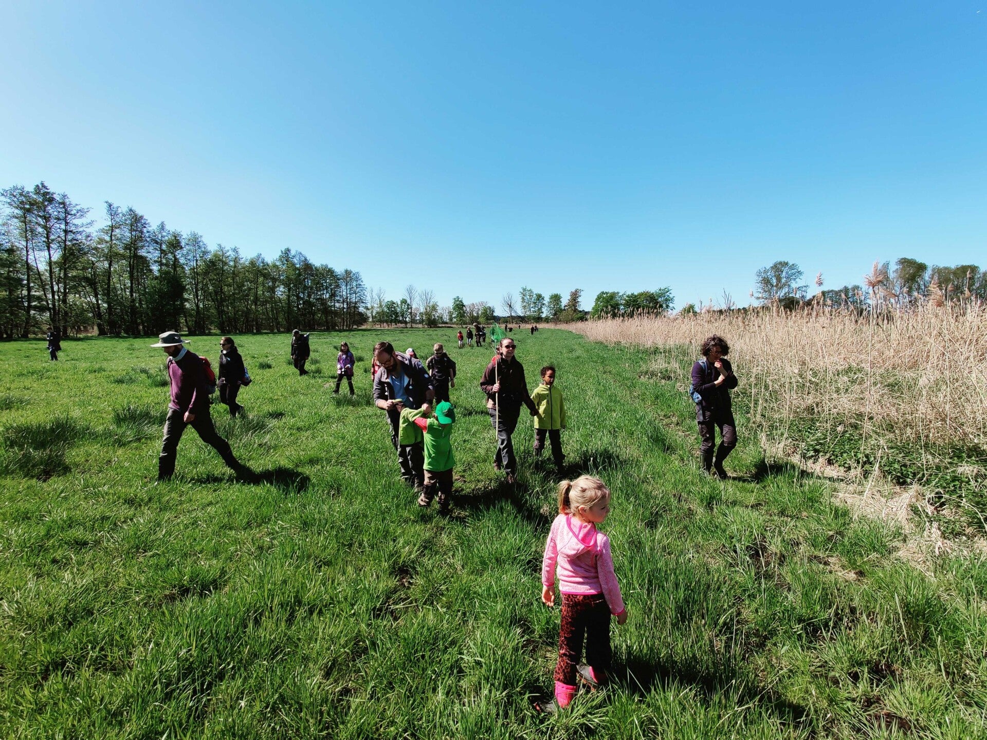 Nach einem ausgiebigen Frühstück am Samstagmorgen machten sich alle Kinder für die Wanderung bereit. Weitere junge Naturendecker*innen stießen dazu, sodass eine große Gruppe in den Drömling aufbrach.